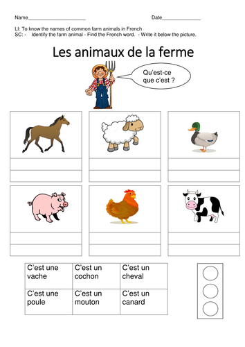 Images. French farm animals board game. This listing is for a french learning activity sheet.